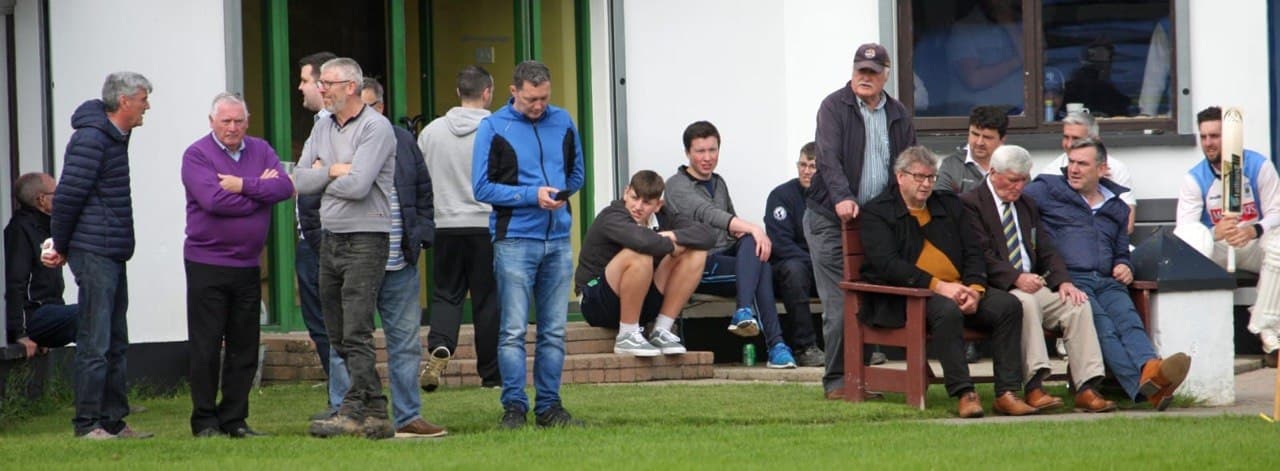 Spectators and members gathered outside the clubhouse watching a match